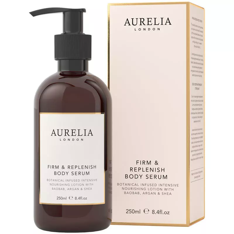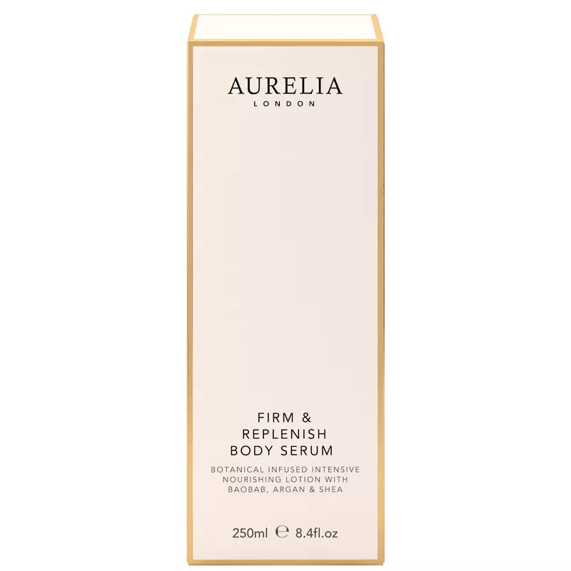 Aurelia Firm Replenish Body Serum er en opstrammende og nærende behandling til kroppen. Denne creme fugter huden i dybden, og indholdet af sheasmør og kakaosmør, giver cremen en fyldig konsistens, som både udglatter og blødgør huden. Den er beriget med arganolie, som sørger for at holde huden hydreret, og som samtidig giver huden en dejlig blød overflade. Deruover er den med essentielle olier, som virker afslappende og balancerende på krop og sind. Olierne består af blandt andet mandarin, bergamotte og cedertræ, som også bidrager til cremens skønne duft, som efterlades på huden efter brug. Aurelia Firm Replenish Body Serum har en virkelig lækker og meget let konsistens, som gør at cremen absorberes øjeblikkeligt, og man kan derfor klæde sig på umiddelbart efter påføring.
