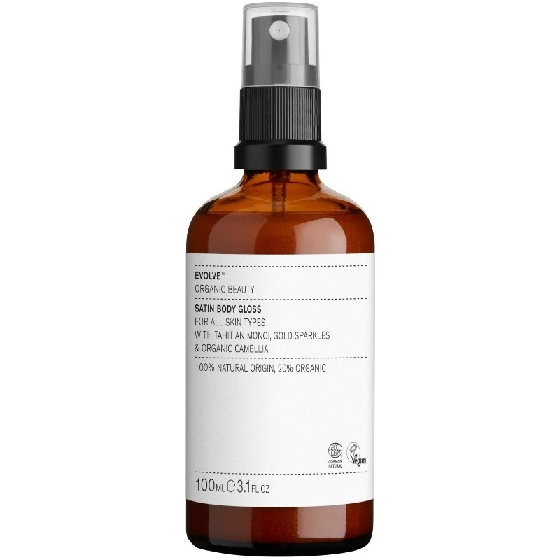 Evolve Satin Body Gloss er en silikonefri tørolie, som er specielt udviklet til at tilføre plejende næring til krop, ansigt og hår.