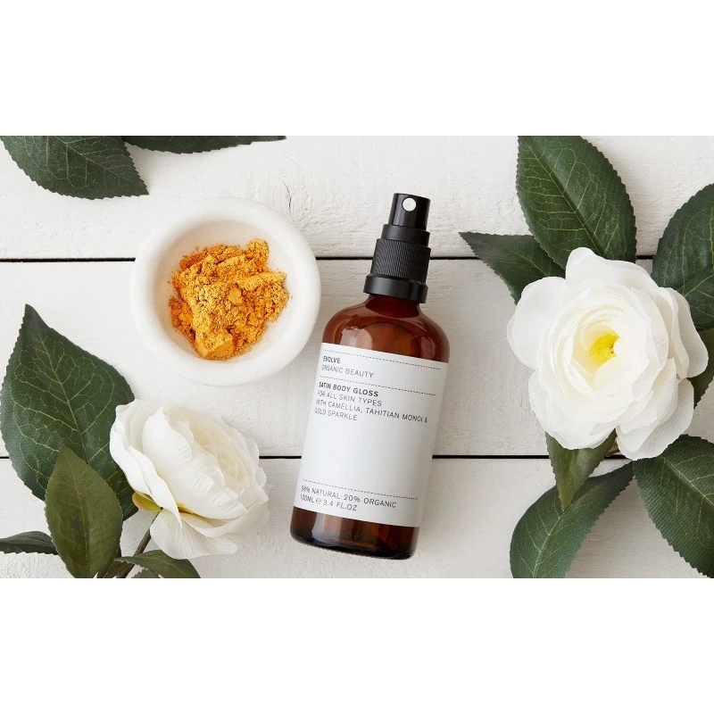 Evolve Satin Body Gloss er parfumeret med 100% naturlig rose, lavendel, jasmin og appelsinblomst med et strejf af vanilje og trænoter.
