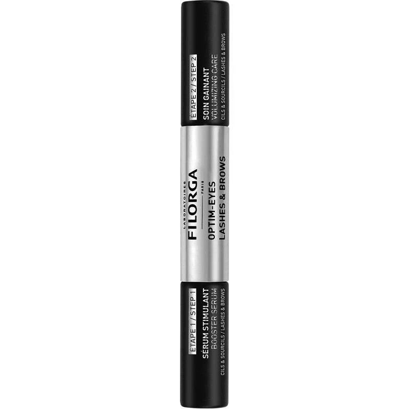 Filorga Optim-Eyes Lashes & Brows er et fantastisk produkt, som kan hjælpe dig med at opnå længere og fyldigere vipper og bryn. Det har et smart design med et boostende serum i den ene ende, mens den anden ende indeholder volumengivende pleje, som skal påføres både vipper og bryn i 2 hurtige og enkle trin.