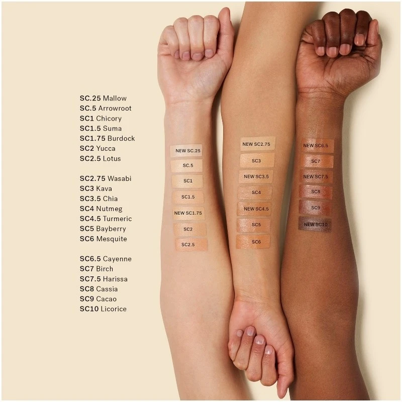 ILIA True Skin Serum Concealer – Yucca SC2 er en virkelig lækker concealer, som giver en medium dækning. Den har en fantastisk konsistens, som nærmest smelter ind i huden, hvor den efterlader huden silkeblød. Den reducerer øjeblikkeligt synligheden af mørke rande og misfarvning, og vil efterlade huden jævn og fejlfri. Som andre af ILIAs makeup produkter, så er denne concealer beriget med en masse hudplejeingredienser, som virker opstrammende, beroligende og plejende.