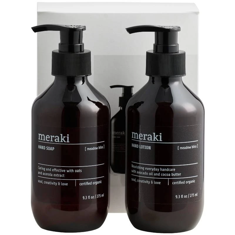 Meraki Giftbox Meadow Bliss Set Of 2 Pieces er et eksklusivt sæt med både en håndsæbe og en håndlotion, der har samme skønne duft. Med dette sæt har du mulighed for at holde dine hænder bløde og velplejede på en nem måde.
