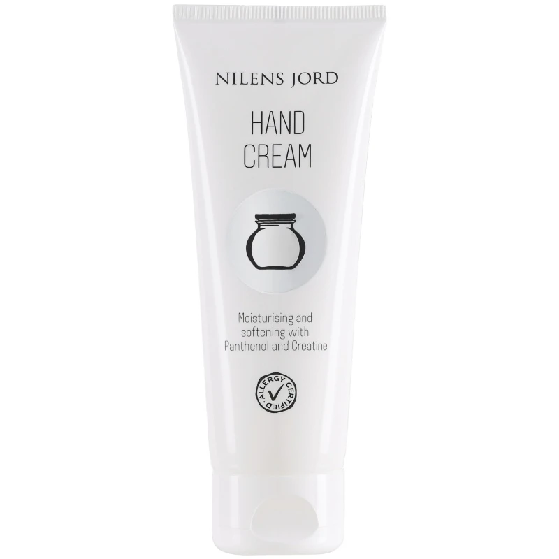 Nilens Jord Hand Cream – No. 416 er en blødgørende og nærende creme til hænderne. Den indeholder den hudplejende panthenol og creatine, som forbedrer hudens elasticitet, og samtidig virker styrkende på bindevævet. Cremen har en lækker konsistens, som hurtigt trænger ind i huden, hvorefter hænderne efterlades silkebløde og gennemfugtede. Den lille størrelse på tuben, gør den velegnet at have med i håndtasken. Hold dine hænder bløde og fugtede med Nilens Jord Hand Cream – No. 416, som selvfølgelig er uden parabener, parfume og æteriske olier.