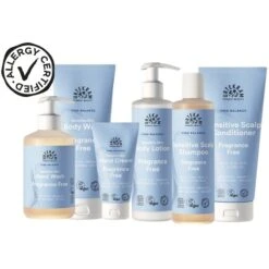 Urtekram Fragrance Free Set er en sammensat pakke med hele 6 produkter. Alle produkterne er lavet på ingredienser af 99-100% naturlig oprindelse, og de er alle uden parfume, hvilket gør dem egnet til alle hudtyper – også sensitiv hud. Her får du en komplet serie til hår og krop, og du kan med god samvittighed bruge de skønne produkter til hele familien.