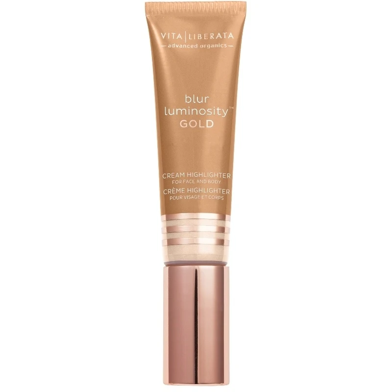 Vita Liberata Blur Luminosity – Gold er en fantastisk og cremet highlighter, med en strålende shimmer effekt, der får din hud til at tage alt opmærksomheden. Med denne gyldne highlighter, får du en frisk og sund udstråling, og så kan den tilmed bruges til at booste et hav af dine produkter. Den kan blandt andet bruges for sig selv, på kindben, øjenlåg eller under brynene, sammen med din primer eller foundation, eller sågar i din bodylotion, hvis din hud trænger til et ekstra pift. Derudover indeholder den Aloe-vera og glycerol, så den udover at give en smuk og attraktiv finish, også plejer og blødgører huden samtidlig.